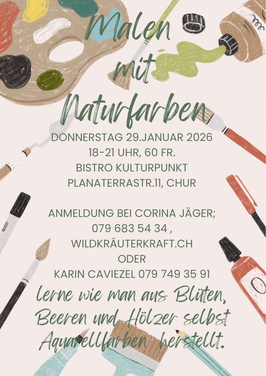 Tauche ein in die faszinierende Welt der Naturfarben und entdecke, wie aus Blüten, Beeren und Hölzern eigene Aquarellfarben entstehen. In diesem kreativen Abendworkshop lernst du Schritt für Schritt, wie natürliche Pigmente gewonnen und zu leuchtenden Farben verarbeitet werden. Dabei bleibt genügend Raum zum Experimentieren, Malen und zum Austausch in entspannter Atmosphäre. Der Kurs findet am […] |